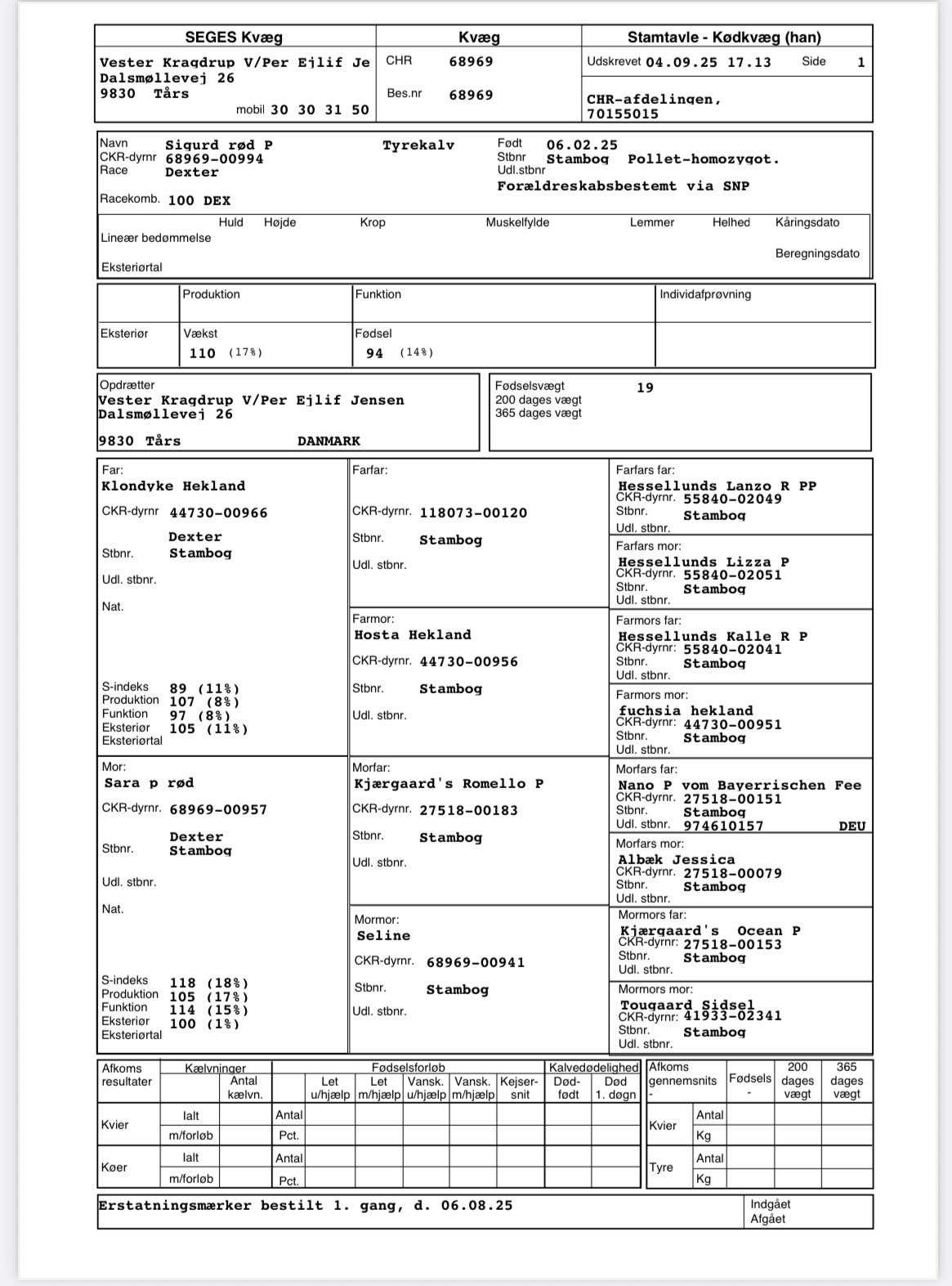 Holbækvejens Marcus ( rød ) 116105-70 kåret helhed 91. Far: Helge 74264-355 kåret helhed 91. Farfar: Christian 68615-143 kåret helhed 90. Mor: Holbækvejens Amanda 103872-04 kåret helhed 89. Morfar: Møllens Julius 107043-16 (inseminerings tyr)